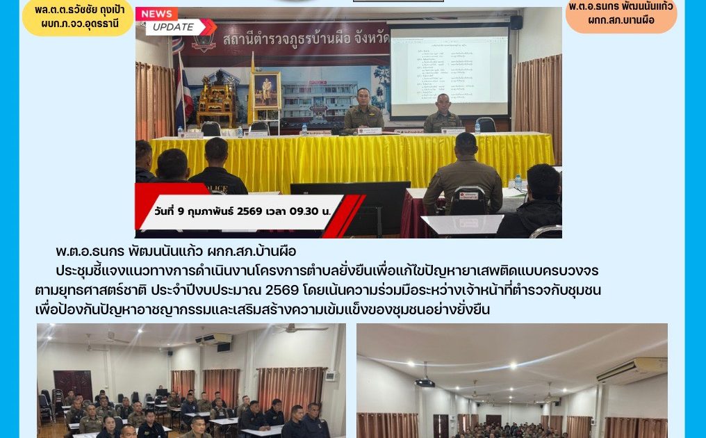 ประชุมชี้แจงแนวทางการดำเนินงานโครงการตำบลยั่งยืนเพื่อแก้ไขปัญหายาเสพติดแบบครบวงจร