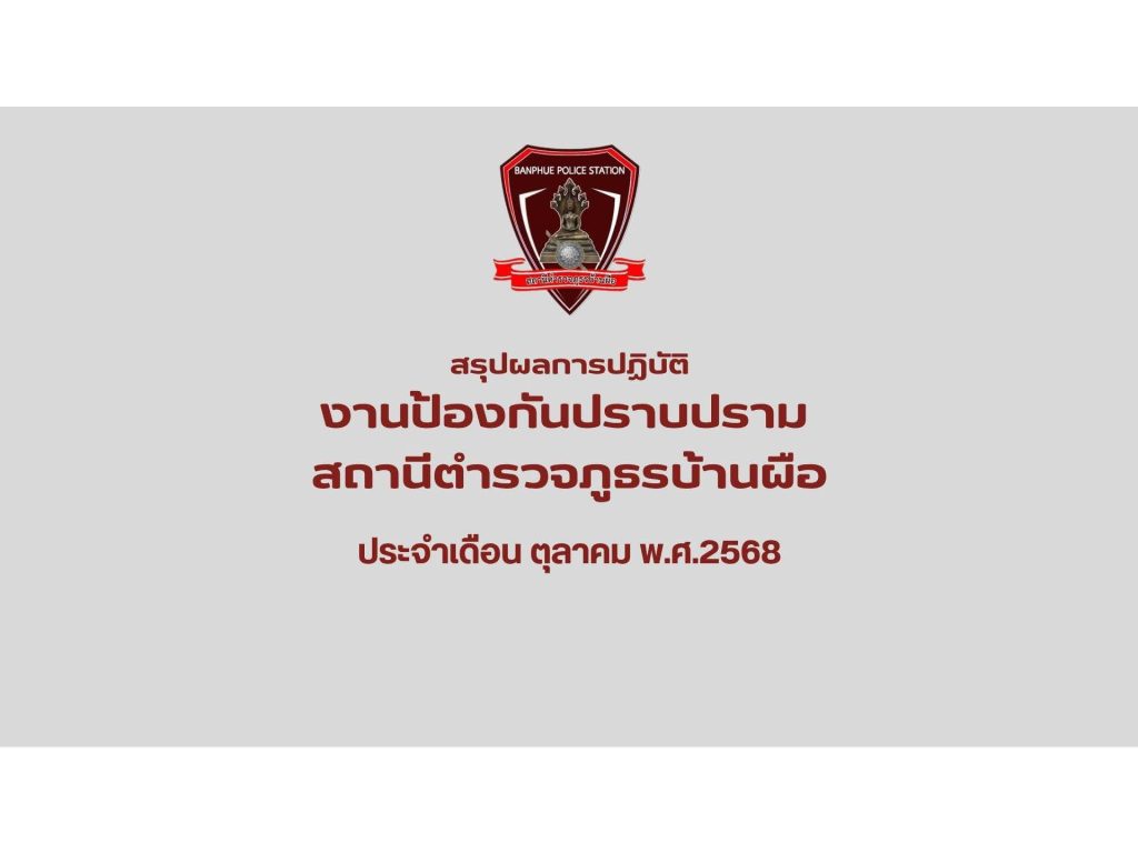 ผลการปฏิบัติงาน ป. ต.ค.68 April 2, 2569 by งานป้องกันปราบปราม / ผลการปฏิบัติงาน,งานป้องกันปราบปราม,ผลการปฏิบัติงาน Facebook iconFacebookTwitter iconTwitterLINE iconLine