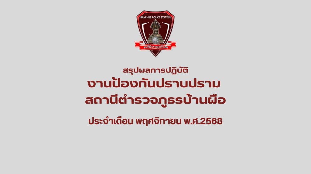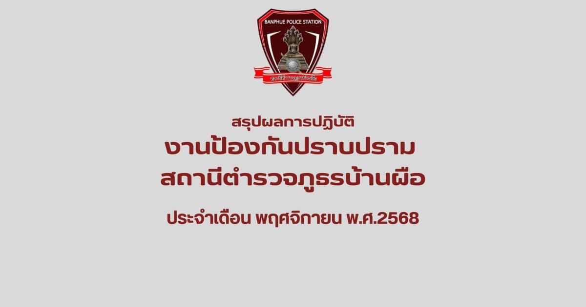 ผลการปฏิบัติงาน ป. พ.ย.68 April 2, 2569 by งานป้องกันปราบปราม / ผลการปฏิบัติงาน,งานป้องกันปราบปราม,ผลการปฏิบัติงาน Facebook iconFacebookTwitter iconTwitterLINE iconLine